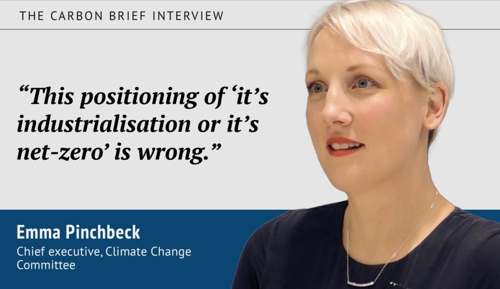 Carbon Brief sat down for an in-depth interview with Emma Pinchbeck, the chief executive of the UK’s Climate Change Committee (CCC). The CCC is a statutory body created under the Climate Change Act 2008 and is the official adviser to the UK government on climate change mitigation and adaptation. The conversation covered a range of topics from the UK’s high energy costs to talking to children about climate change.