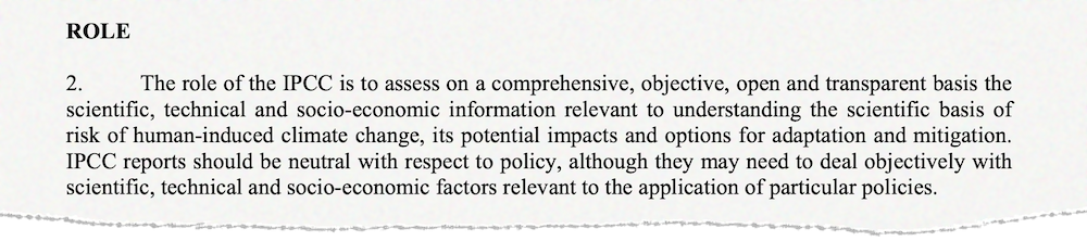 The IPCC’s official rulebook, last updated in 2013, highlights the IPCC’s role in producing comprehensive assessments of the state of human-caused climate change. It stipulates that its assessments must provide “relevant” information – and that reports should be “neutral with respect to policy”.